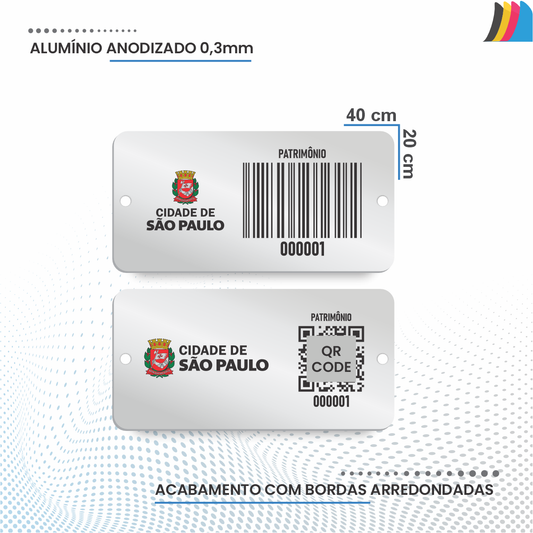 40X20 mm - Placa de Patrimônio Ativo Fixo em Alumínio Anodizado 0,3 mm