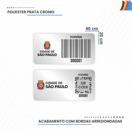 40X20 mm - Etiqueta de Patrimônio Ativo Fixo em Poliéster Cromo Fosco