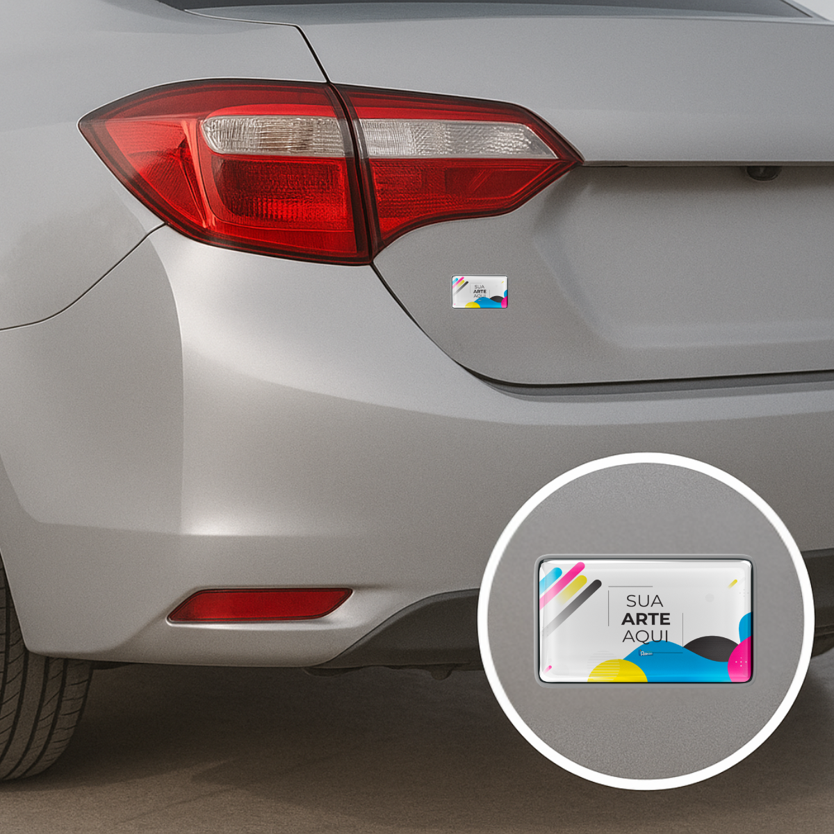 6X3 cm - Adesivo Resinado Prata Personalizado - Resina PU