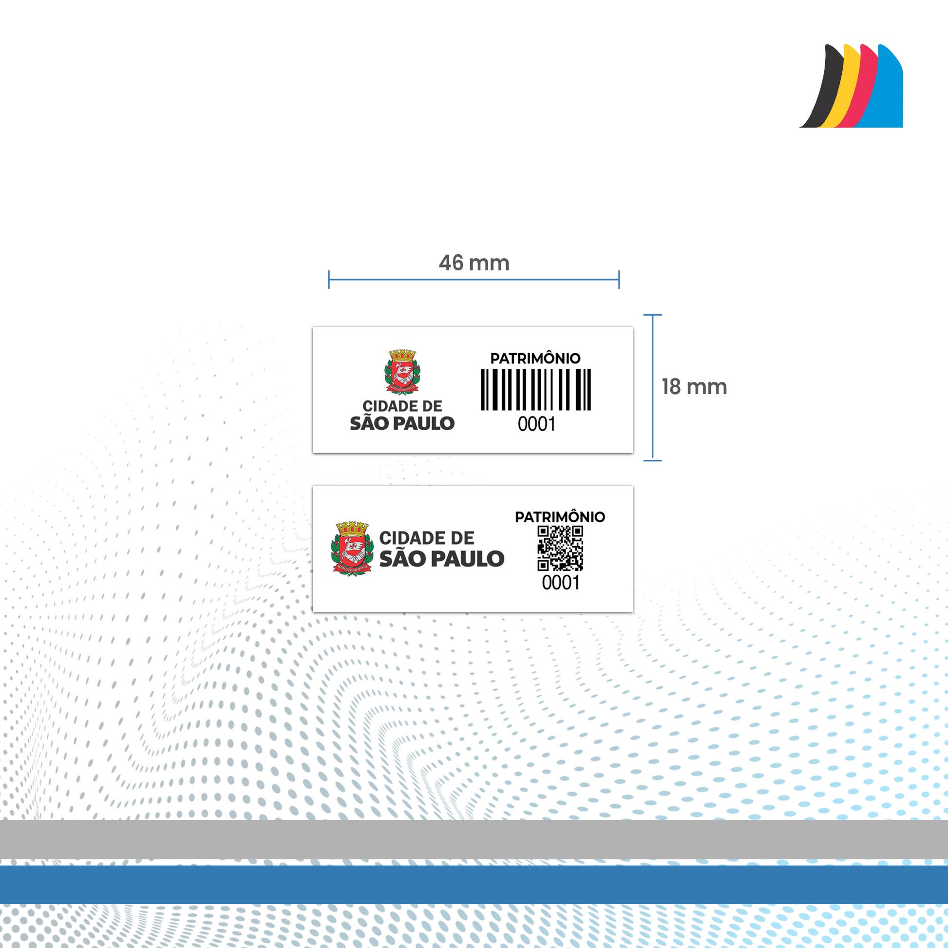 Com dimensões compactas de 46X18 mm, cada etiqueta é personalizada com o logotipo da sua empresa, numeração sequencial, e pode incluir código de barras ou QR Code, otimizando o rastreamento e o controle por meio de sistemas digitais.
