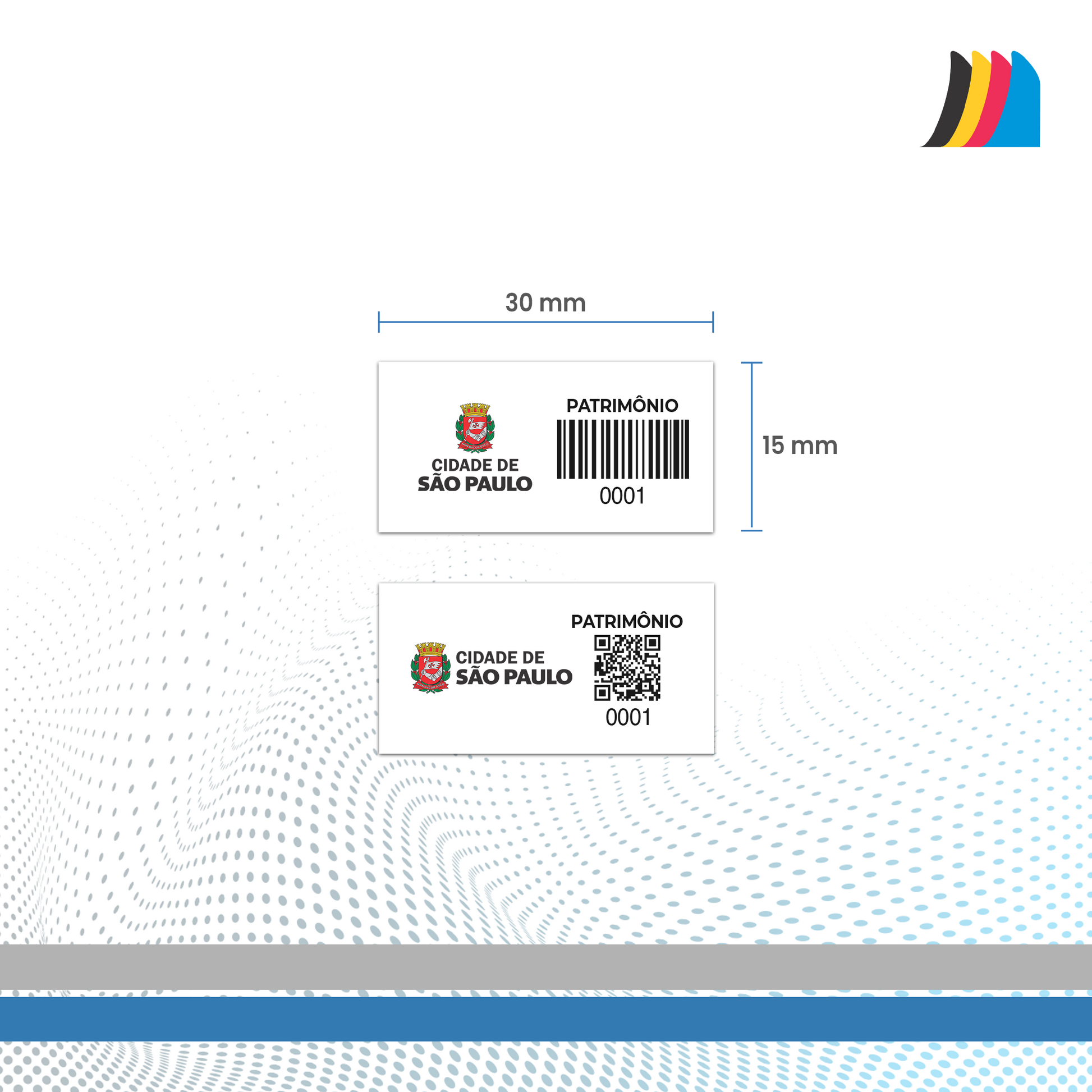 Com dimensões compactas de 30X15 mm, cada etiqueta é personalizada com o logotipo da sua empresa, numeração sequencial, e pode incluir código de barras ou QR Code, otimizando o rastreamento e o controle por meio de sistemas digitais.