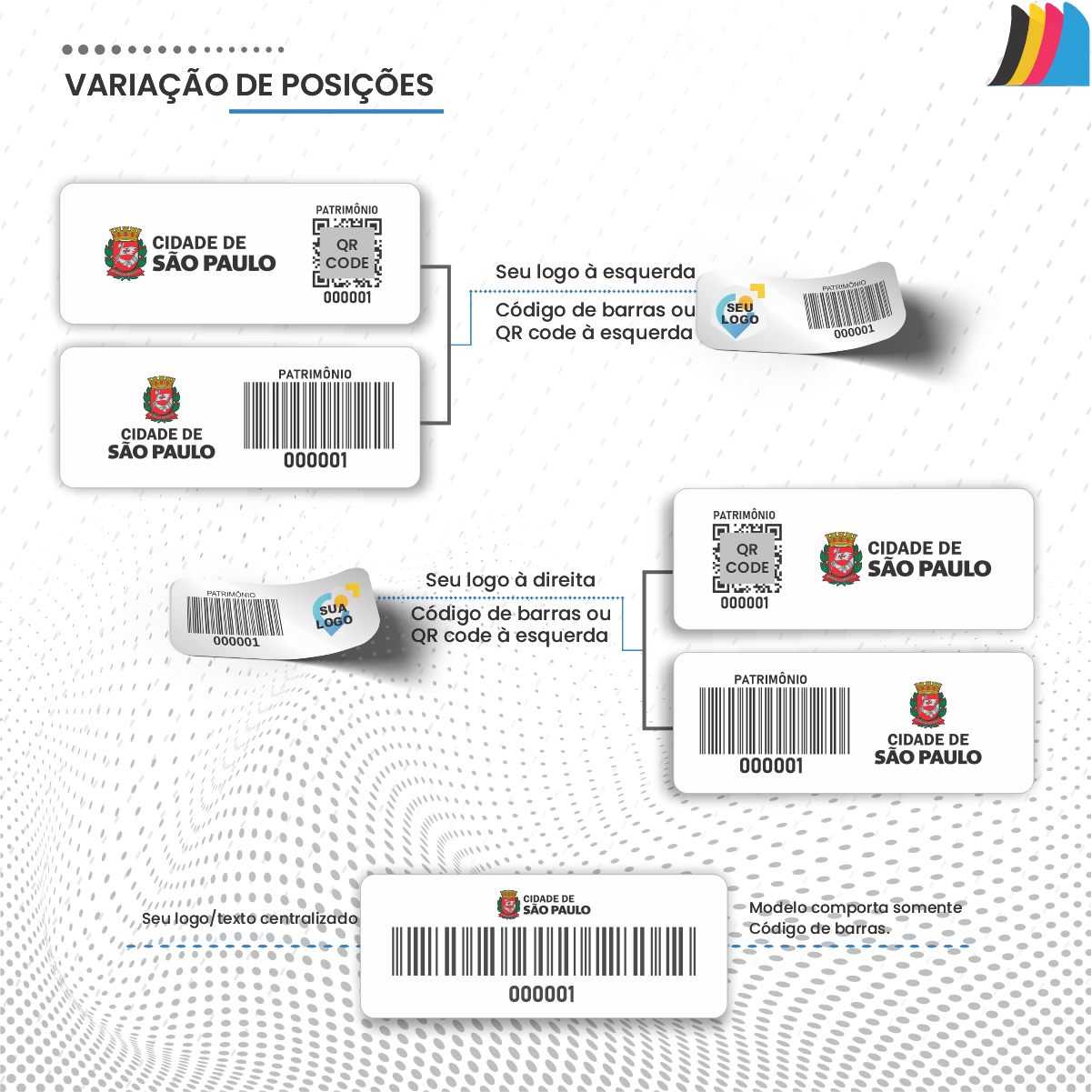 Com dimensões compactas de 50x20 mm, cada etiqueta é personalizada com o logotipo da sua empresa, numeração sequencial, e ainda pode conter código de barras ou QR Code, facilitando o escaneamento e controle por sistemas digitais.